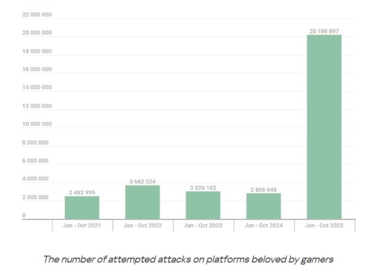 গেমিং সেক্টরেও সাইবার হুমকির মাত্রা ছিল বেশি। স্টিম, প্লেস্টেশন এবং এক্সবক্সের মতো জনপ্রিয় গেমিং প্ল্যাটফর্মে দুই কোটি হামলার চেষ্টা রেকর্ড হয়েছে। সবচেয়ে উদ্বেগজনক বিষয় হলো ডিসকর্ডের মাধ্যমে শনাক্ত হওয়া এক কোটি ৮৫ লাখের বেশি ম্যালওয়ার আক্রমণ, যা গত বছরের তুলনায় প্রায় চৌদ্দ গুণ বেশি।